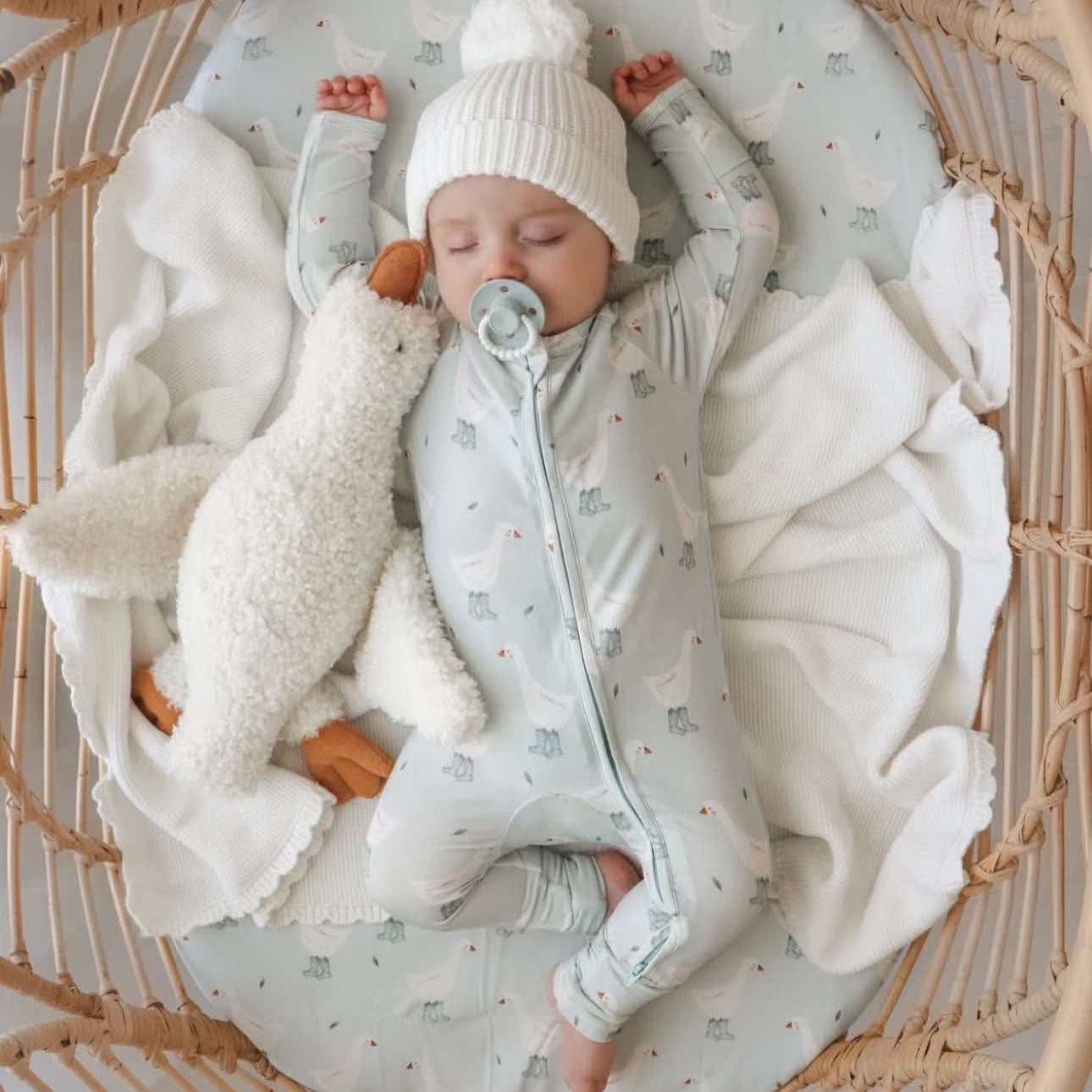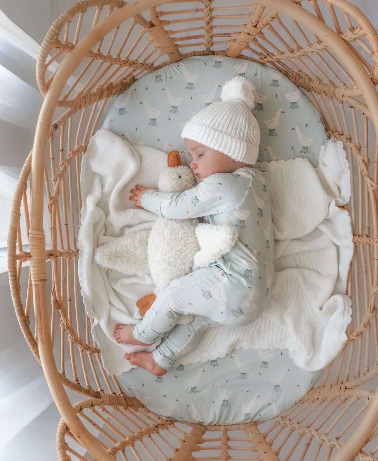 Not only is bamboo luxuriously soft, it also has amazing benefits and qualities. Bamboo is naturally hypoallergenic, ideal for sensitive baby skin. It is breathable and highly absorbent, making for a better night's sleep by keeping moisture away from the body. Keeps you warm in winter and cooler in summer with its ability to thermo-regulate. Snuggle your babe up in our luxurious bamboo pieces.